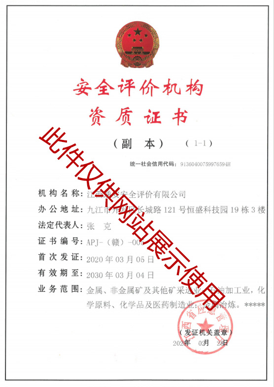 • 安全評價機構資質證書